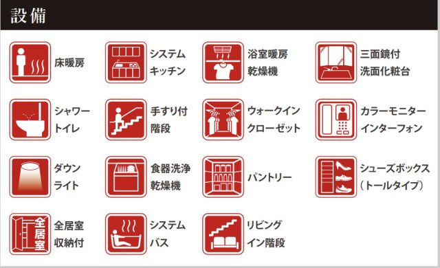 滝子幼稚園まで徒歩7分と気軽に通うことができます。浴室乾燥機のあるお風呂場は洗濯物を干すときにも便利です。来訪者の顔が確認できる、安心のTVインターホン付きです。多くの方からこだわり条件でいただく新築戸建ての物件です。こちらは床暖房が付いている物件です。沢山の服を掛けて収納できるウォークインクローゼットは、服を畳むことが面倒な人におすすめです。デザイン性のあるシステムキッチン付きなので、キッチンがお洒落なスペースになっています。