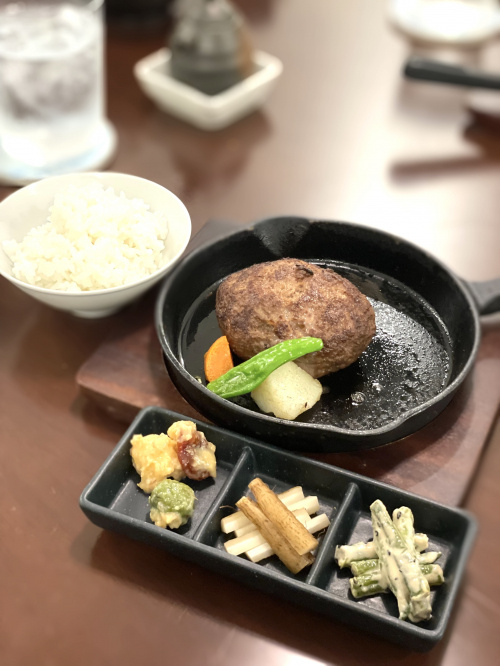 ハンバーグはジューシーでポン酢がさっぱりとしていてとっても美味しかったです。