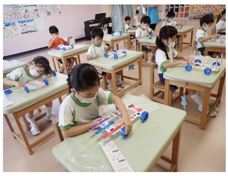 幼稚部では、午前中は、知力・体力・芸術を養う教育的プログラムを実施し、午後からは、外で元気にのびのびと体を動かしながら自主性を育てるプログラム(一年を通して週一回は、水泳教室に通います。)を行い、生きる知恵と国際性を持ったお子様へと導きます。